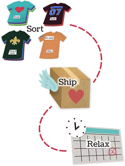 Lastly, we've honed our ordering process to keep things as effortless as possible for you. We do all the cutting and layout work and only require minimal instruction from you on which side of each garment to use before we get started and handle the rest!